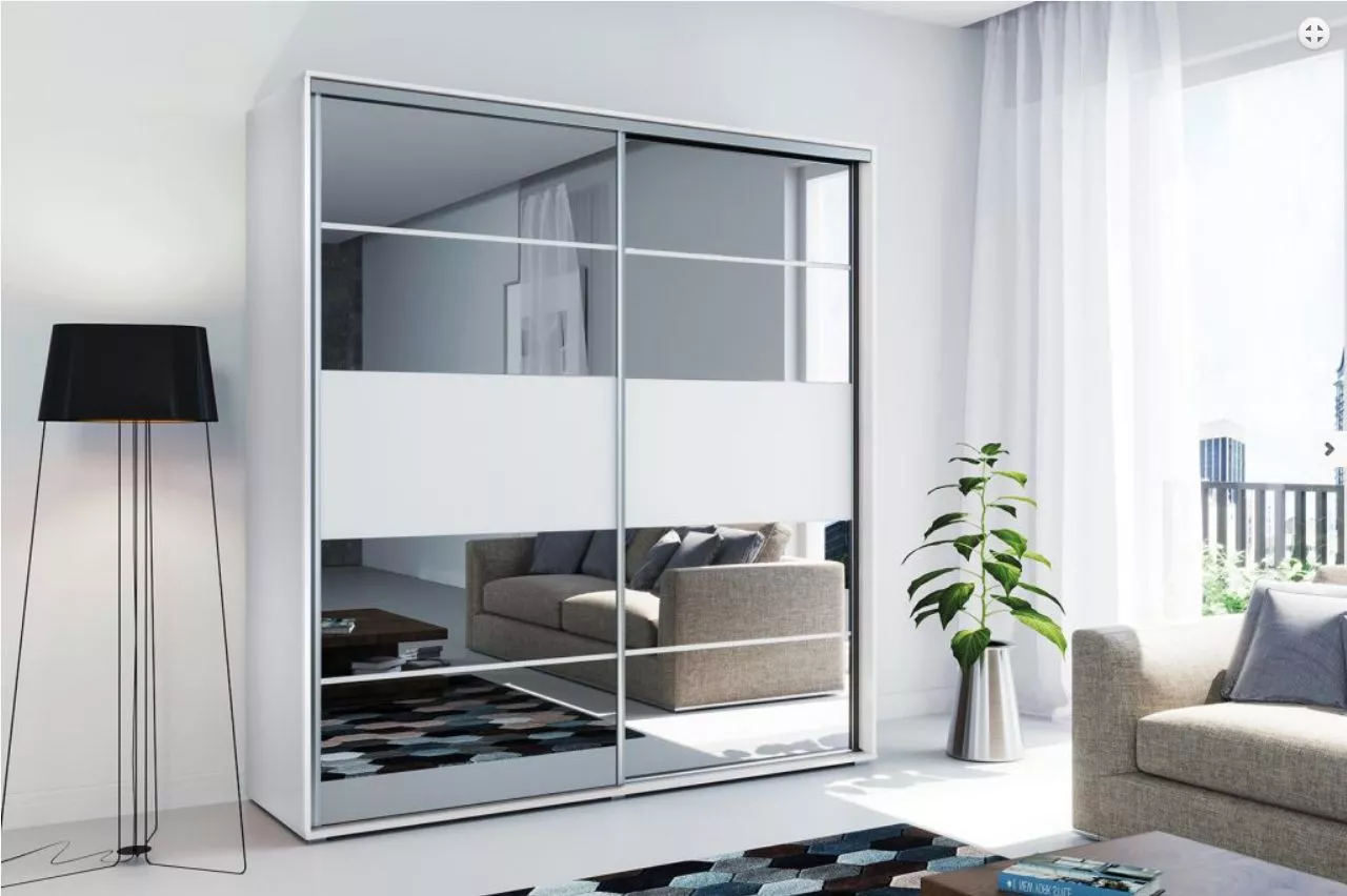 Zrcadlová šatní skříň 200/215 BENEDICTO - bílá