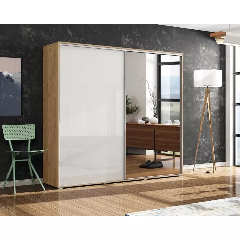 Zrcadlová šatní skříň 200/215 CALEB - dub craft zlatý / bílá