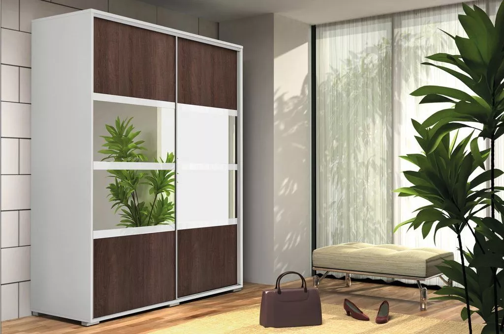 Prostorná šatní skříň se zrcadlem 230/215 CELESTINO 1 - bílá / čokoláda