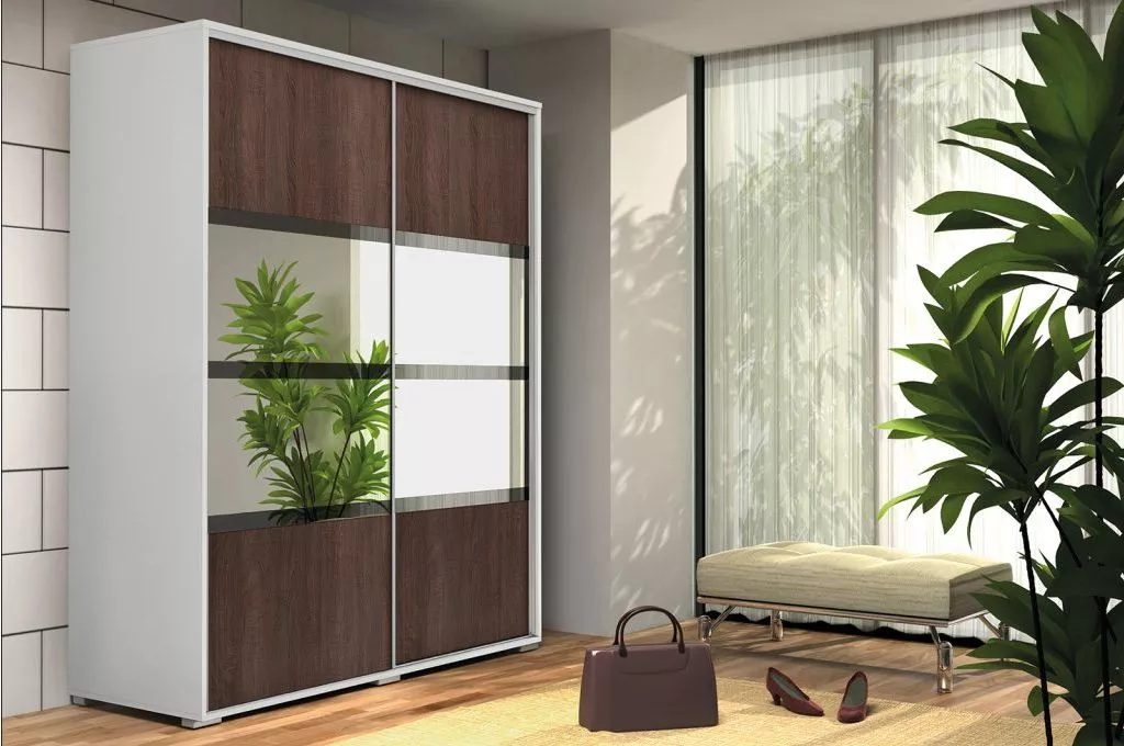 Prostorná šatní skříň se zrcadlem 230/215 CELESTINO 2 - bílá / čokoláda
