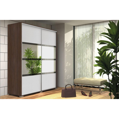 Prostorná šatní skříň se zrcadlem 175/215 CELESTINO 2 - čokoláda / bílá