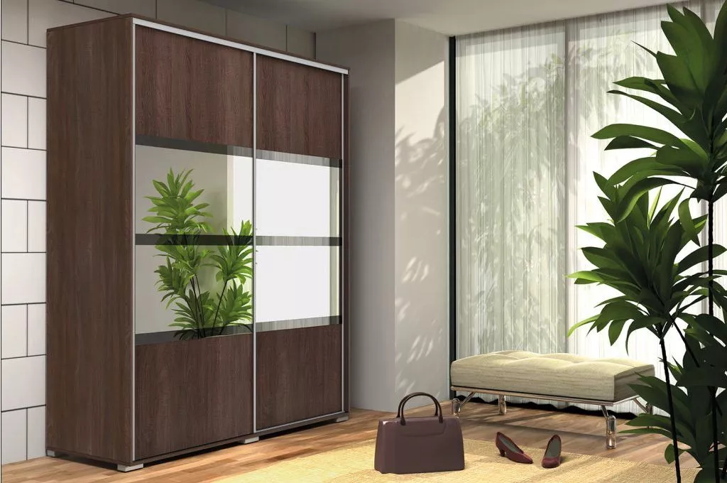 Prostorná šatní skříň se zrcadlem 125/215 CELESTINO 2 - čokoláda