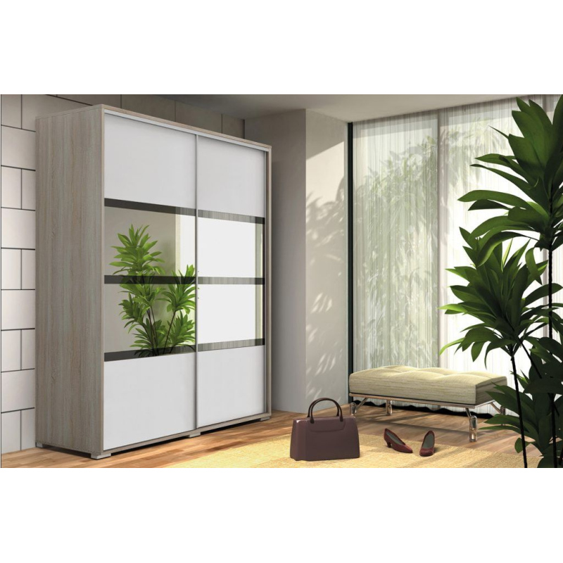 Nadčasová šatní skříň v šířce 150 cm skvěle doplní váš interiér. Kvalitní zpracování LTD potěší i náročné uživatele, praktické posuvné dveře oceníte v boji s nedostatkem místa. Nabídka se vyznačuje nejen moderním designem, ale také stabilní strukturou. Uvnitř skříně jsou police a šatní tyč.