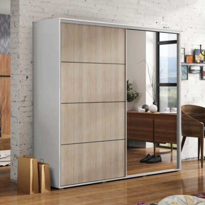 Prostorná zrcadlová šatní skříň 175/245 ENRIQUE - bílá / dub sonoma