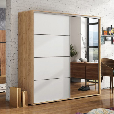 Prostorná zrcadlová šatní skříň 230/245 ENRIQUE - dub craft zlatý / bílá
