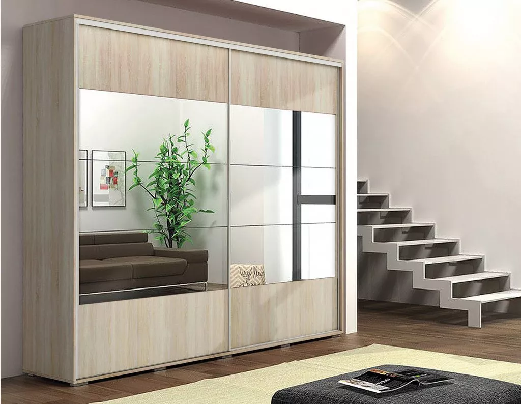 Zrcadlová šatní skříň 230/245 FERNANDO - dub sonoma