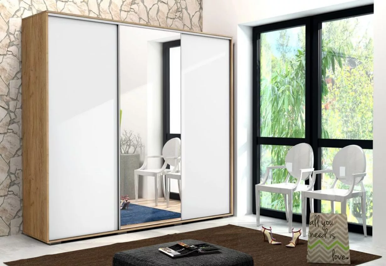 Prostorná třídveřová šatní skříň 250 cm LEONARDO - dub craft zlatý / bílá