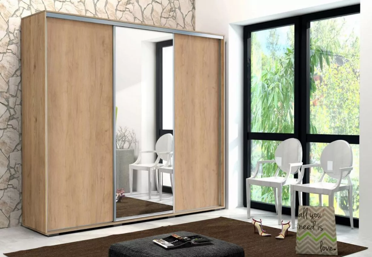 Prostorná třídveřová šatní skříň 278 cm LEONARDO - dub craft zlatý