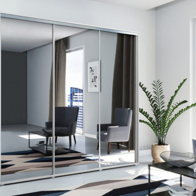 Zrcadlová šatní skříň 250 cm MIGUEL - bílá