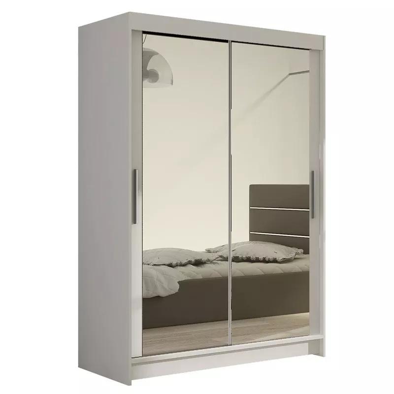 Díky zrcadlům umístěným ve středu skříně bude celý interiér o něco větší. Zrcadlo je praktickým doplňkem, abyste si mohli zkontrolovat svůj outfit.