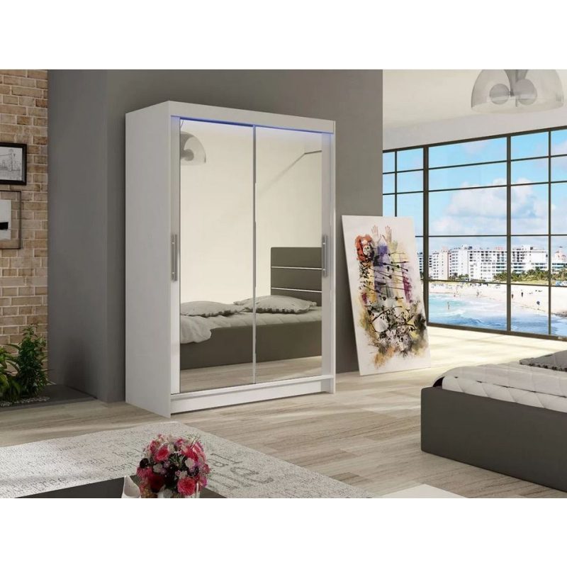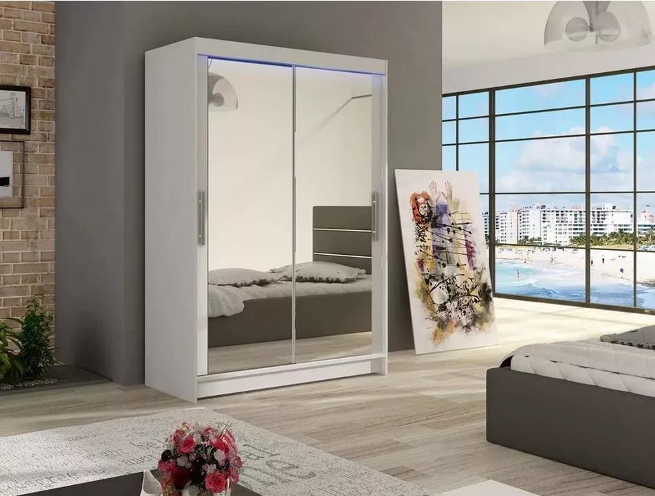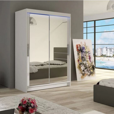 Šatní skříň 120 cm se zrcadlem a LED osvětlením GASPARA 7 - bílá