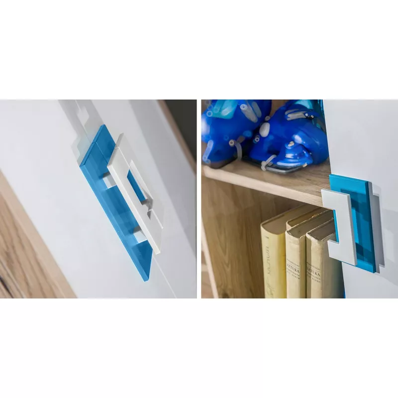 Kombinovaná rohová šatní skříň se hodí do každého moderního či skandinávského interiéru. Vnitřní uspořádání je tvořeno policemi, šuplíky a šatní tyčí, které umožňují snadné oddělení každodenních věcí.