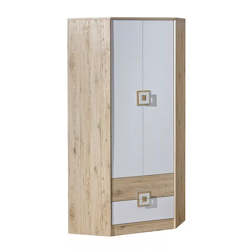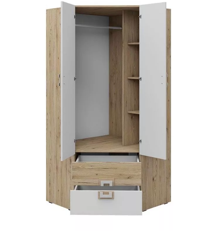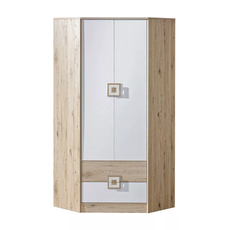 Rohová šatní skříň 87 cm BEATRIZ 2 - bílá / dub