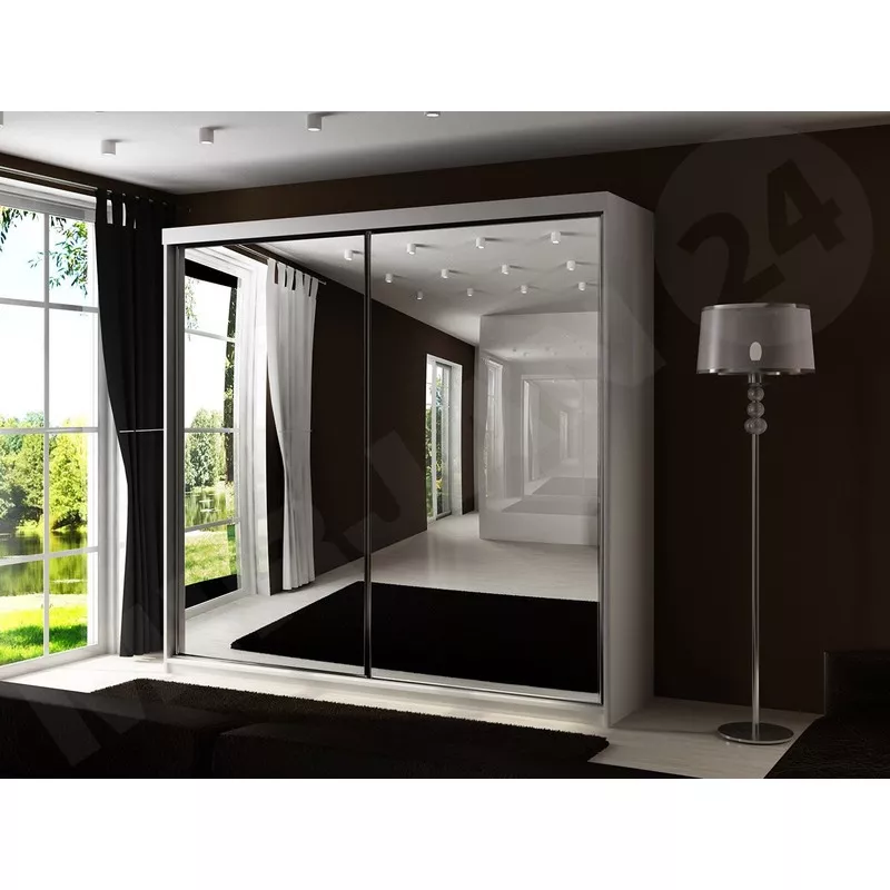 Šatní skříň 200 cm s posuvnými dveřmi a zrcadlem ELVIRA - bílá
