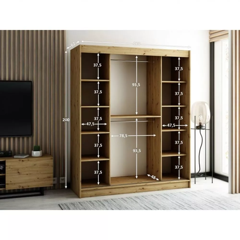 Praktická šatní skříň LENOX 180 - dub artisan / černá
