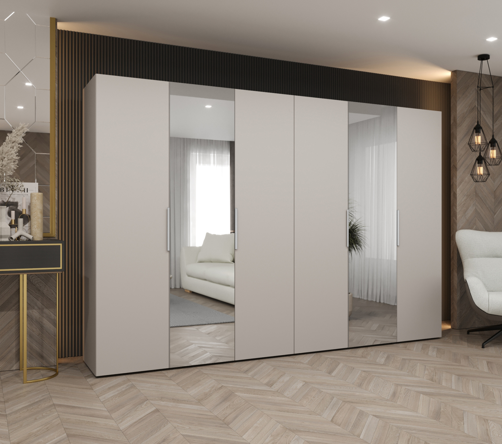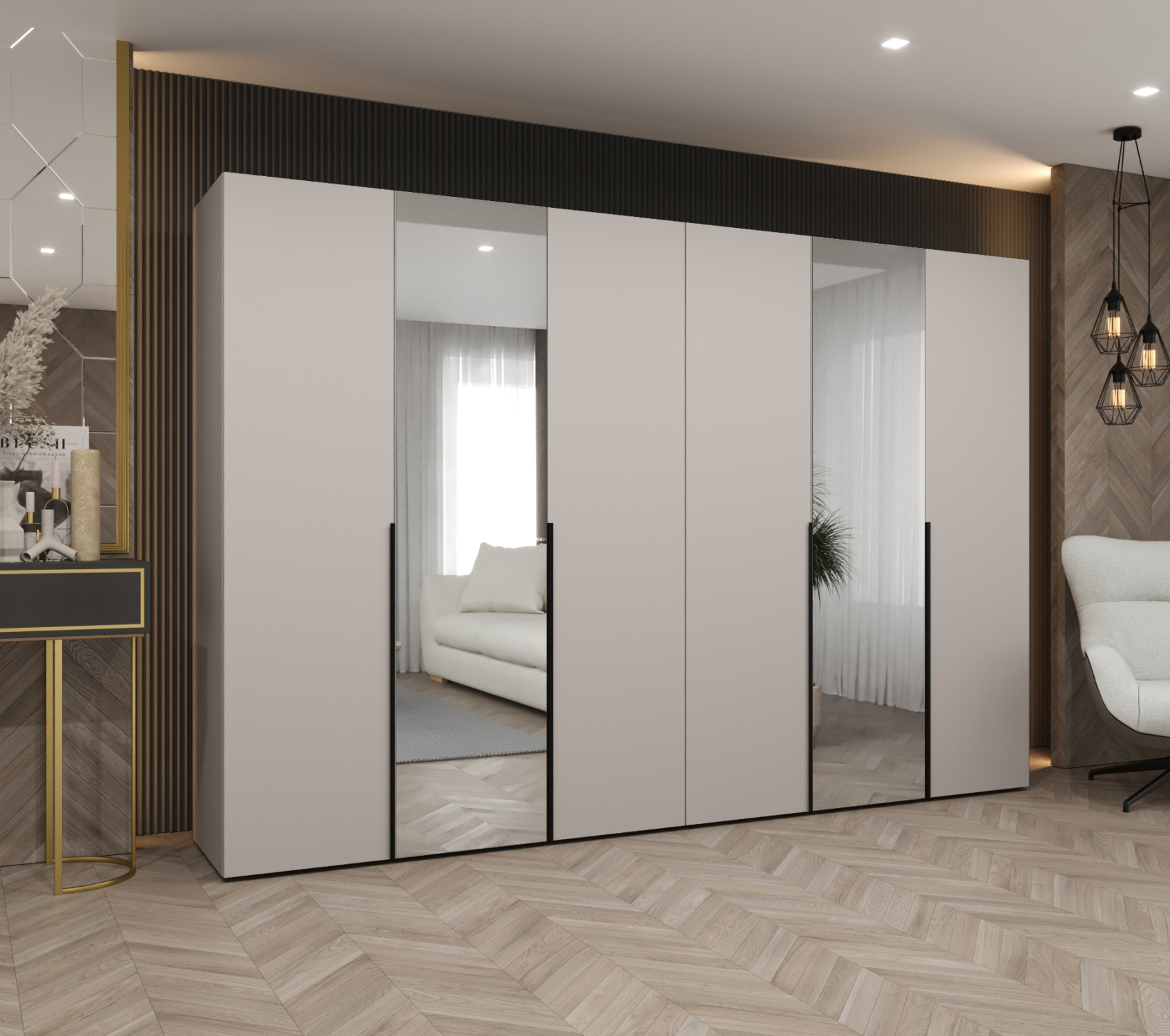 Šatní skříň Lenox je vyrobena z LTD nábytkové desky o síle 16 mm, hrany jsou pečlivě zakončeny ABS. Šatní skříň je vybavena posuvnými dveřmi na kolejničkách a bezúchytovým systémem.