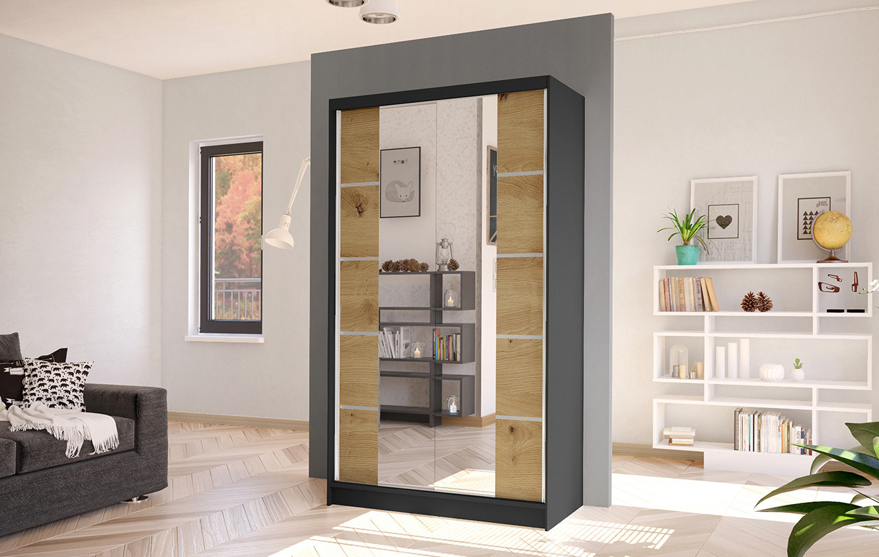 Praktická šatní skříň LENOX 2 100 - dub artisan / černá