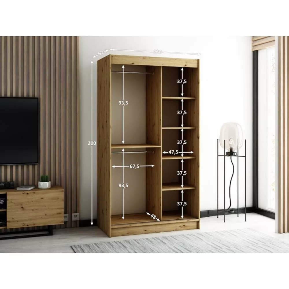 Praktická šatní skříň LENOX 2 120 - dub artisan / černá