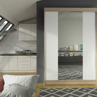 Moderní šatní skříň LINH 2 - šířka 120 cm, sonoma / bílá