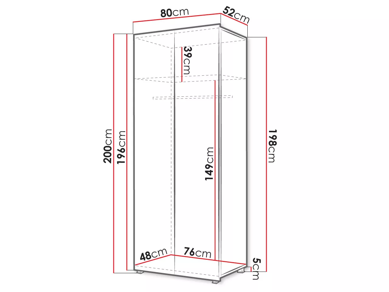Klasická, jednoduchá a prostorná dvoudveřová skříň CHEMUNG může být doplňkem každé ložnice nebo předsíně. Dvoudveřová šatní skříň je vybavena tyčí na ramínka a policí, která je umístěna v horní části. Skříň nemá žádné úchytky a ozdobným detailem jsou stříbrné nožičky.
