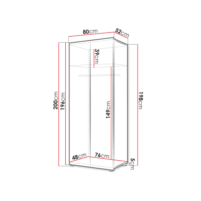 Šatní skříň 80 cm CHEMUNG - bílá / lesklá bílá
