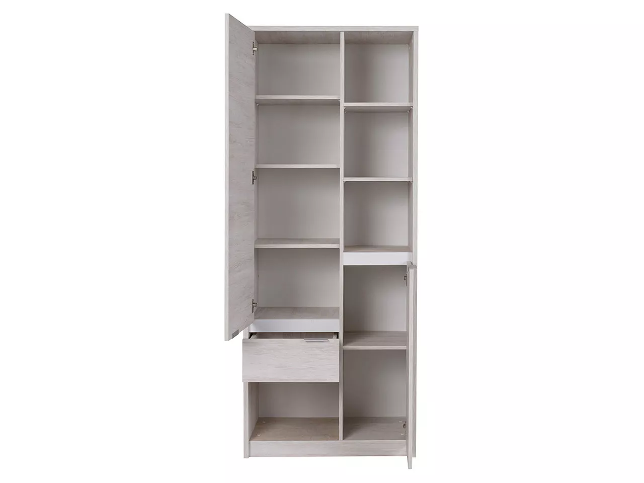 Praktickým a mimořádně módním řešením pro váš interiér je skříň PEORIA 1. Skříň je praktická a velmi všestranná. Je vybavena prostornými skříňkami, policemi a zásuvkou, do kterých můžete uložit spoustu věcí. Otevřené police mohou sloužit pro úschovu knih a výstavu dekoračních předmětů. Skříň je vyrobena z odolných materiálů, které zaručují dlouholetou spokojenost.