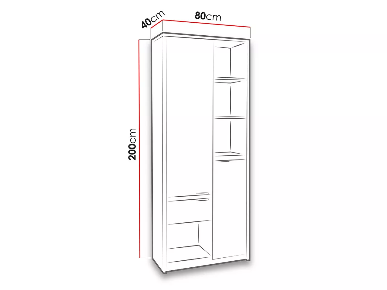 Šatní skříň 80 cm PEORIA 1 - dub monastery / lesklá černá