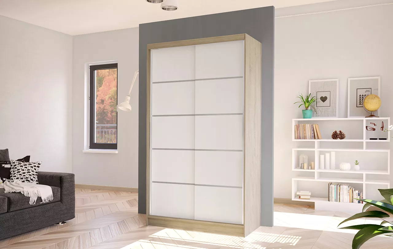 Elegantní šatní skříň ARINI 4 - šířka 100 cm, dub sonoma / bílá