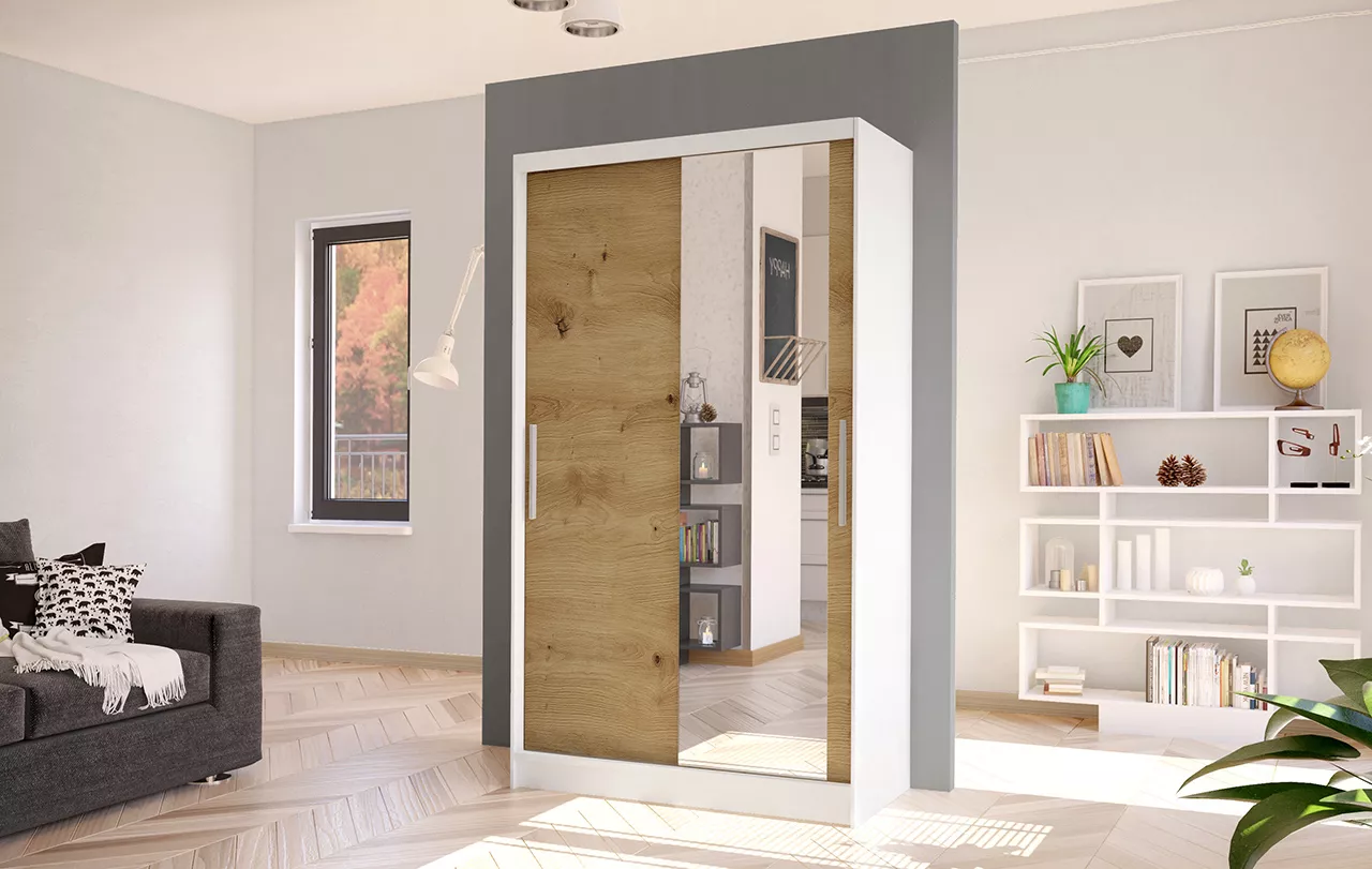 Moderní šatní skříň BRUNO 6 - šířka 100 cm, bílá / dub artisan