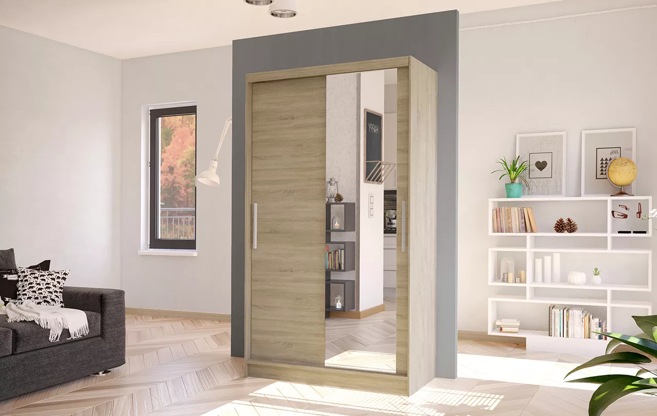 Šatní skříň BRUNO 6 nabízí velkorysý úložný prostor pro vaše oblečení. Díky vnitřnímu uspořádání budete moci vše uložit tak, aby každý kus oděvu měl své místo a vy jej v případě potřeby snadno našli. Zrcadlo umístěné na posuvných dveřích vám prosvětlí interiér a opticky zvětší prostor.