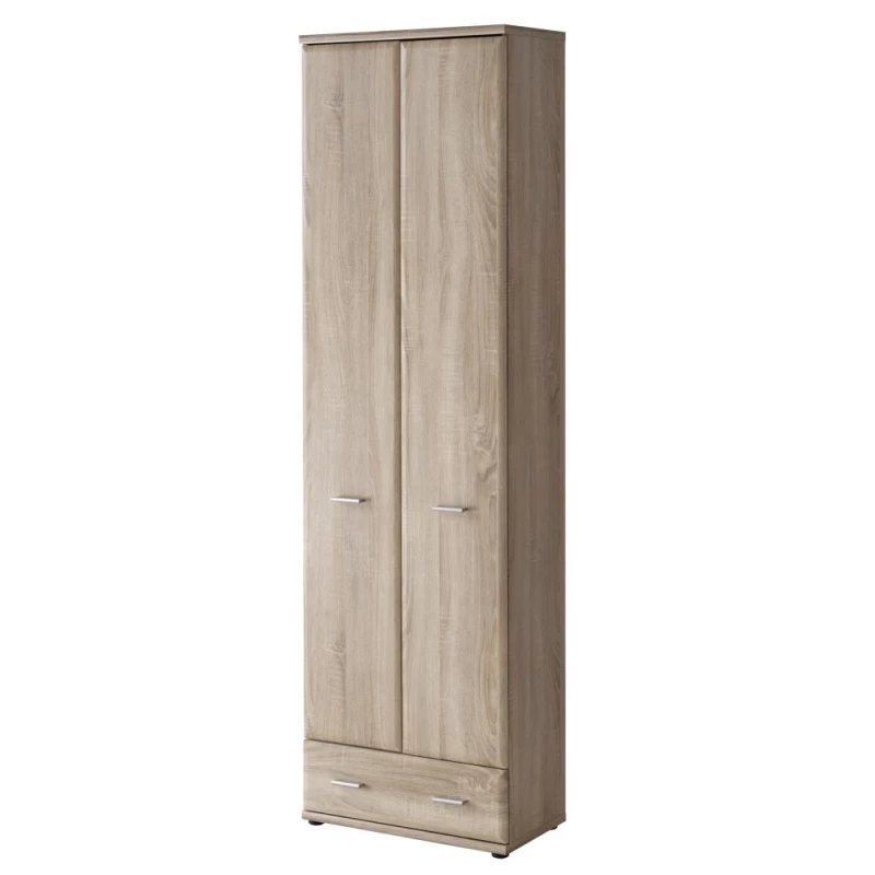 Skříň ARINA je ideální kus nábytku pro úzké a malé chodby. V tomto případě jsou výhodou skříně její malé rozměry. Kromě toho byla šatní skříň vybavena věšákem a policemi uvnitř skříně. Kromě toho má skříň navíc ještě zásuvku.