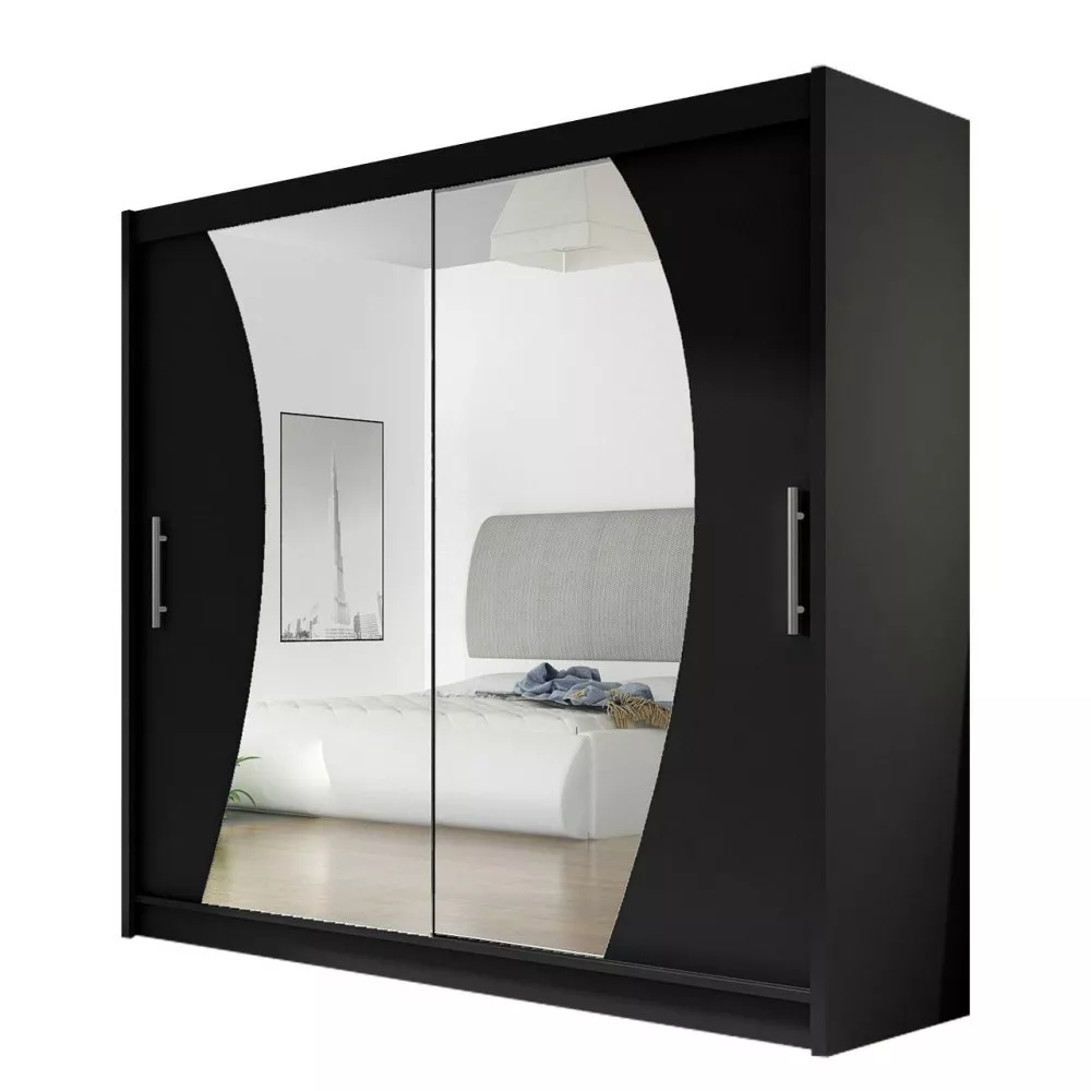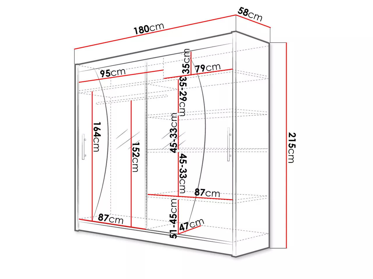 Šatní skříň se zrcadlem a LED osvětlením FLORENCIO 9 se hodí do každého moderního interiéru. Vnitřní uspořádání je tvořeno hlubokými policemi a šatní tyčí, které umožňují snadné oddělení každodenních věcí. Systém posuvných dveří zaručuje snadné a jednoduché ovládání dveří. Skříň je vybavena inovativním RGB LED osvětlením, které nabízí výběr mezi 15 barevnými variantami. LED osvětlení se ovládá pomocí přiloženého dálkového ovládání.