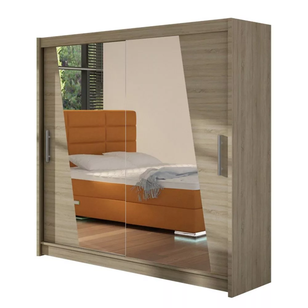Šatní skříň 180 cm se zrcadlem a LED osvětlením FLORENCIO 14 - dub sonoma