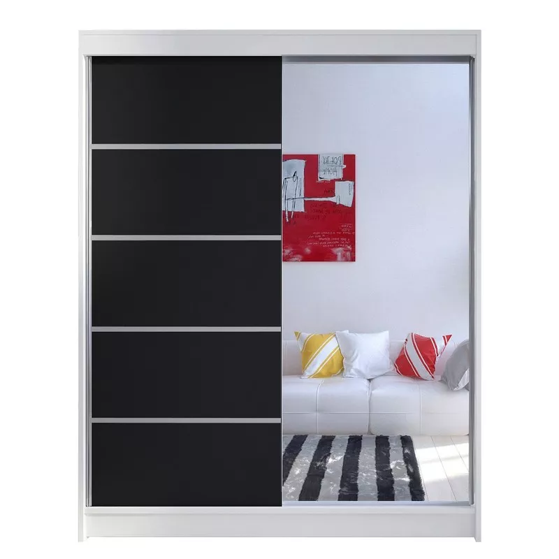 Šatní skříň 150 cm se zrcadlem a LED osvětlením PIRITU 3 - černá / bílá