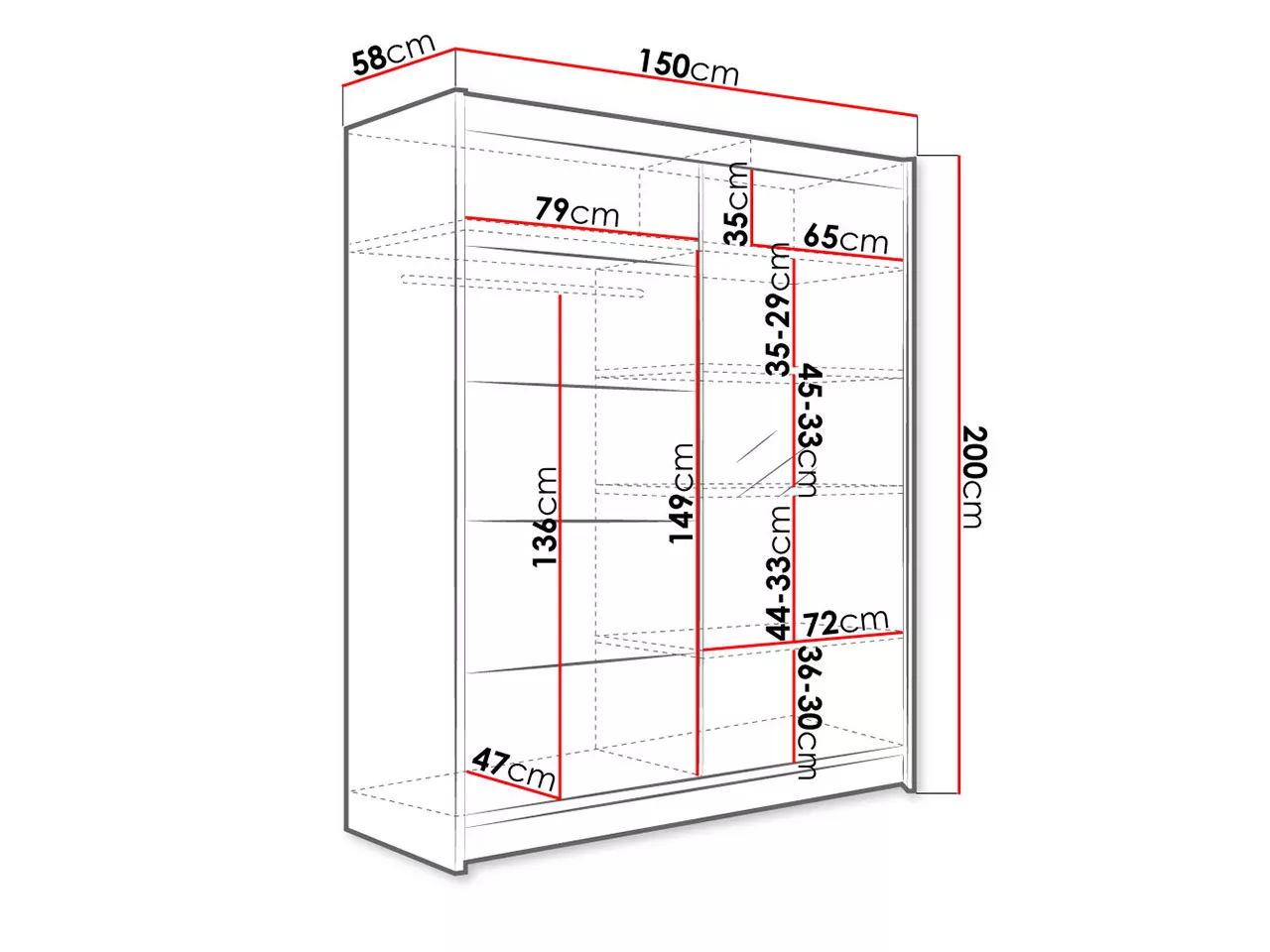 Šatní skříň se zrcadlem a LED osvětlením PIRITU 3 může být doplňkem každé ložnice nebo předsíně. Vnitřní uspořádání je tvořeno hlubokými policemi a šatní tyčí, které umožňují snadné oddělení každodenních věcí. Skříň je vybavena RGB LED osvětlením. Na výběr je mezi 15 barevnými variantami, které se přepínají pomocí přiloženého dálkového ovládání. Zrcadlo dodává šatníku kouzlo a zvětšuje a osvětluje místnost, ve které bude skříň umístěna. Konstrukce skříně je vyrobena z vysoce kvalitní LTD desky, jejíž hrany byly zesíleny PVC dýhou, což zaručuje vysokou kvalitu. Systém posuvných dveří funguje hladce a plynule. Hliníkové úchyty na posuvných dveřích zdůrazňují moderní styl, zvyšují funkčnost šatníku a brání ohýbání dveří.