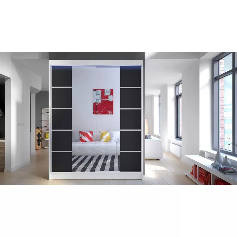 Zrcadlová šatní skříň 150 cm s posuvnými dveřmi a LED osvětlením PIRITU 5 - bílá / černá