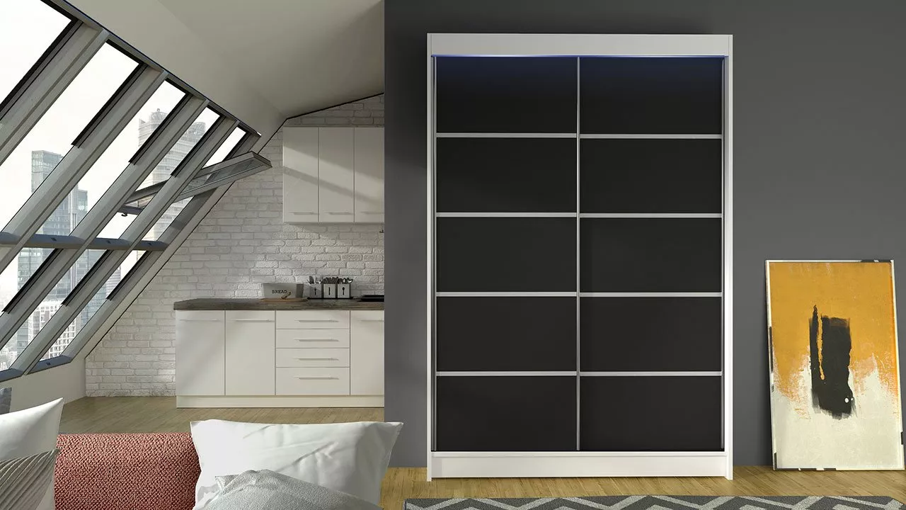 Posuvná šatní skříň 120 cm s LED RGB osvětlením SAMANRE 4 - bílá / černá