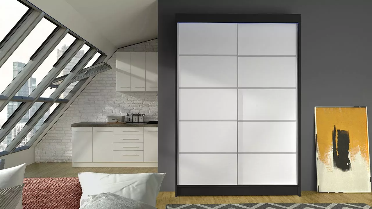 Posuvná šatní skříň 120 cm s LED RGB osvětlením SAMANRE 4 - černá / bílá