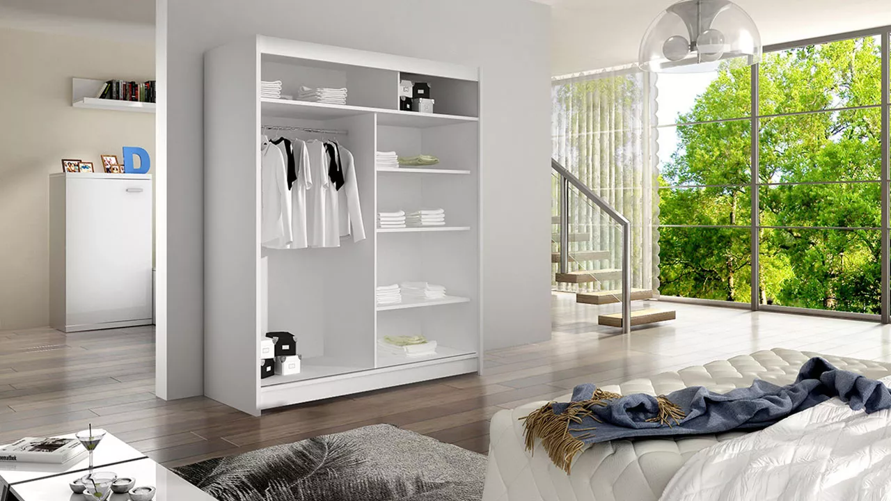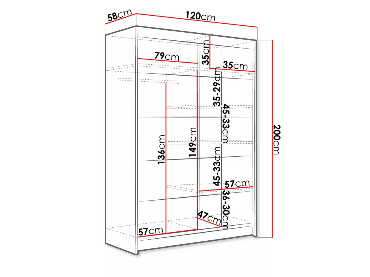 Šatní skříň s LED RGB osvětlením SAMANRE 4 může být doplňkem každé ložnice nebo předsíně. Vnitřní uspořádání je tvořeno hlubokými policemi a šatní tyčí, které umožňují snadné oddělení každodenních věcí. Skříň je vybavena RGB LED osvětlením. Na výběr je mezi 15 barevnými variantami, které se přepínají pomocí přiloženého dálkového ovládání. Konstrukce skříně je vyrobena z vysoce kvalitní LTD desky, jejíž hrany byly zesíleny ABS dýhou, což zaručuje vysokou kvalitu. Systém posuvných dveří funguje hladce a plynule. Důvodem jsou hliníkové vodící lišty a úchyt ve formě hliníkových pásků.