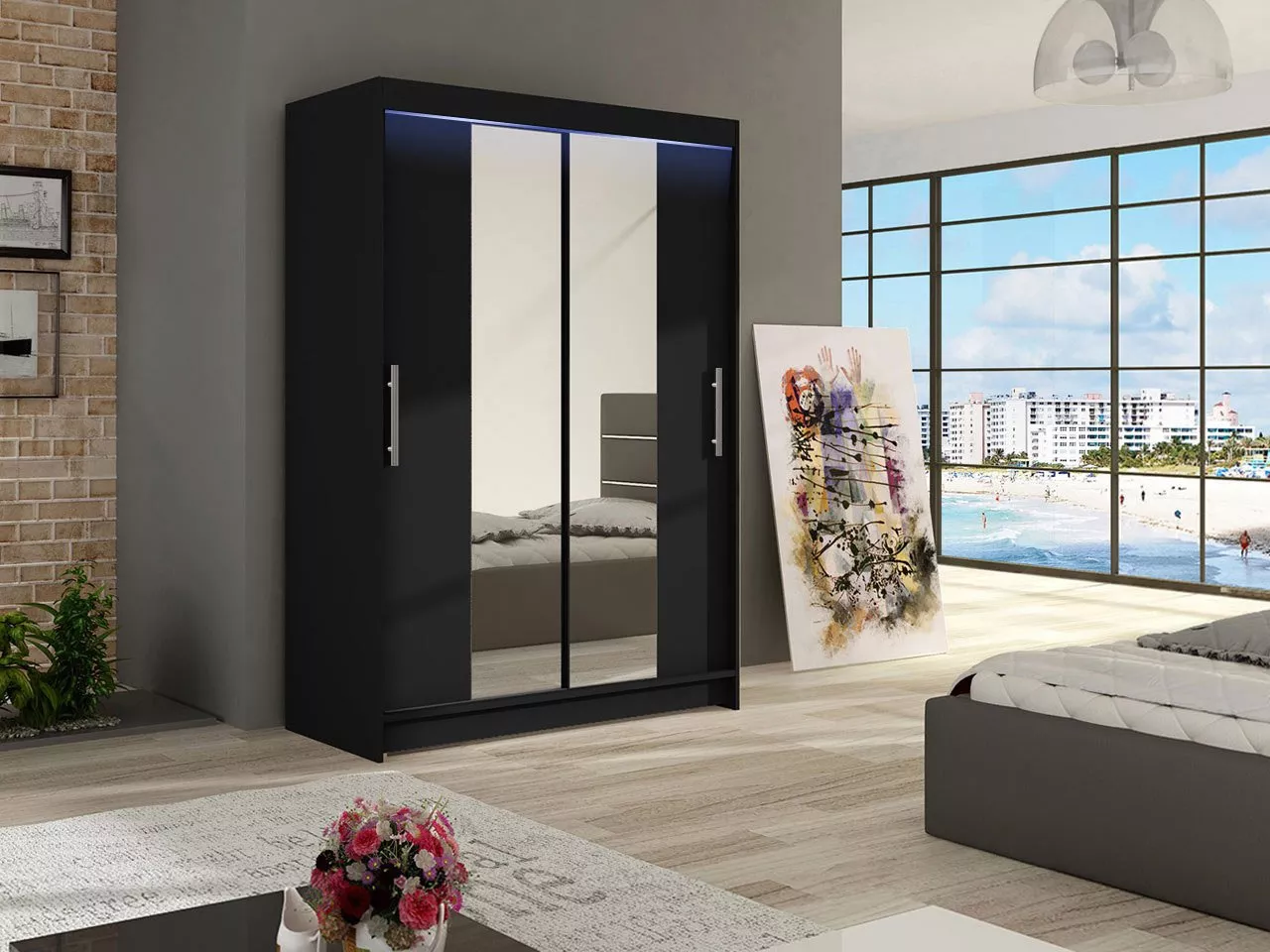 Šatní skříň 120 cm se zrcadlem a LED osvětlením GASPARA 2 - černá