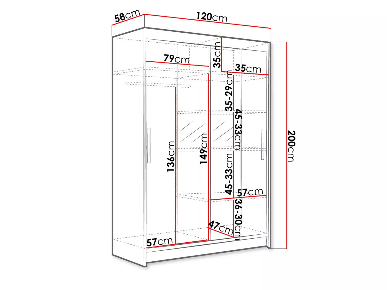 Šatní skříň se zrcadlem a LED osvětlením GASPARA 2 může být doplňkem každé ložnice nebo předsíně. Vnitřní uspořádání je tvořeno hlubokými policemi a šatní tyčí, které umožňují snadné oddělení každodenních věcí. Skříň je vybavena RGB LED osvětlením. Na výběr je mezi 15 barevnými variantami, které se přepínají pomocí přiloženého dálkového ovládání. Zrcadlo, které je umístěno uprostřed, dodává šatníku kouzlo, zatímco zvětšuje a osvětluje místnost, ve které bude skříň umístěna. Konstrukce skříně je vyrobena z vysoce kvalitní LTD desky, jejíž hrany byly zesíleny ABS dýhou, což zaručuje vysokou kvalitu.