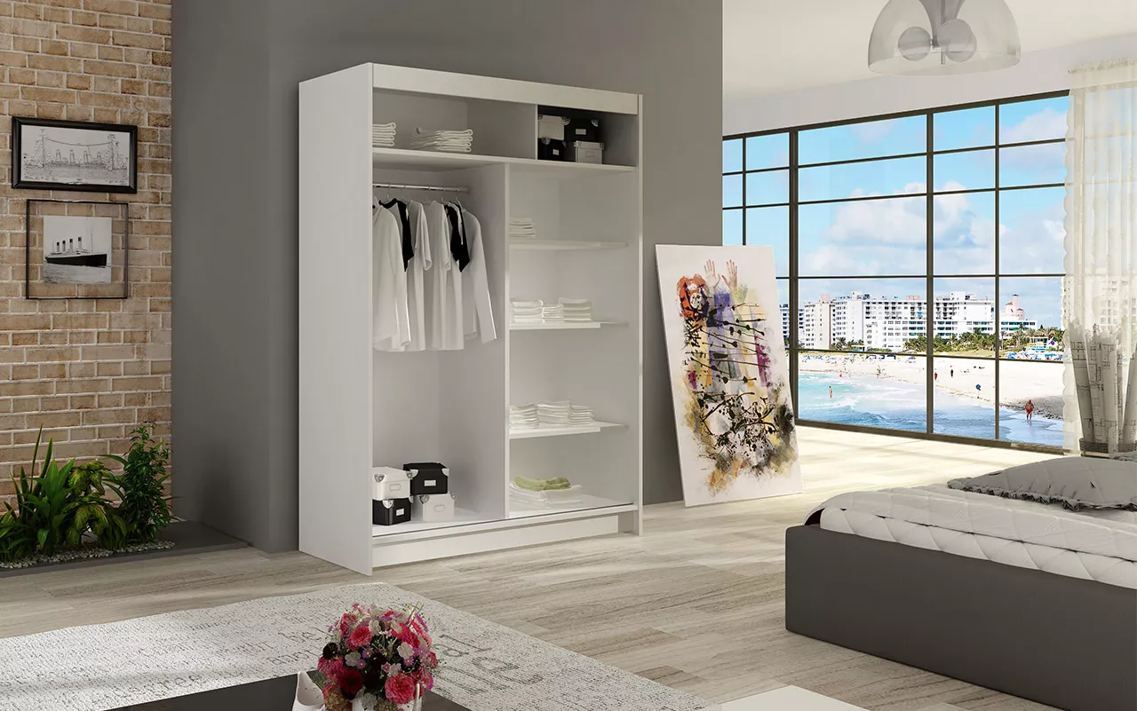 Šatní skříň se zrcadlem a LED osvětlením GASPARA S může být doplňkem každé ložnice nebo předsíně. Vnitřní uspořádání je tvořeno hlubokými policemi a šatní tyčí, které umožňují snadné oddělení každodenních věcí. Skříň je vybavena RGB LED osvětlením. Na výběr je mezi 15 barevnými variantami, které se přepínají pomocí přiloženého dálkového ovládání. Zrcadlo, které je umístěno uprostřed, dodává šatníku kouzlo, zatímco zvětšuje a osvětluje místnost, ve které bude skříň umístěna. Konstrukce skříně je vyrobena z vysoce kvalitní LTD desky, jejíž hrany byly zesíleny ABS dýhou, což zaručuje vysokou kvalitu.