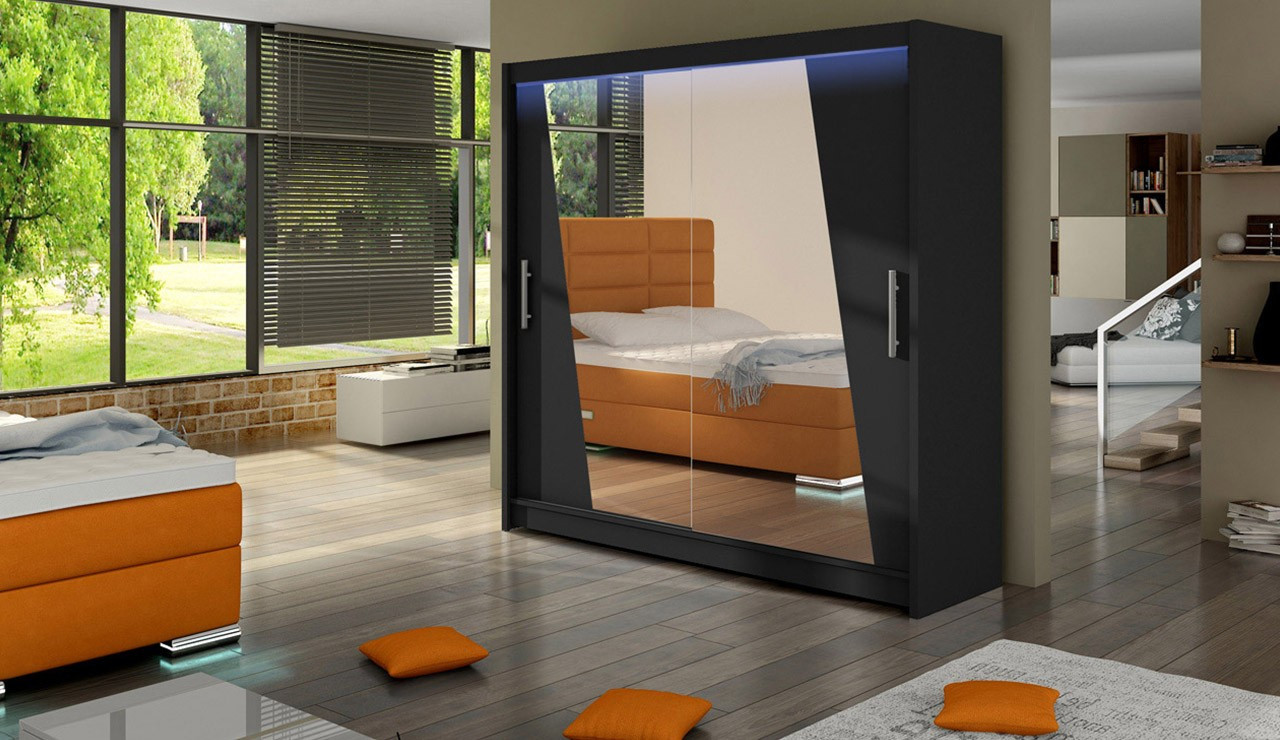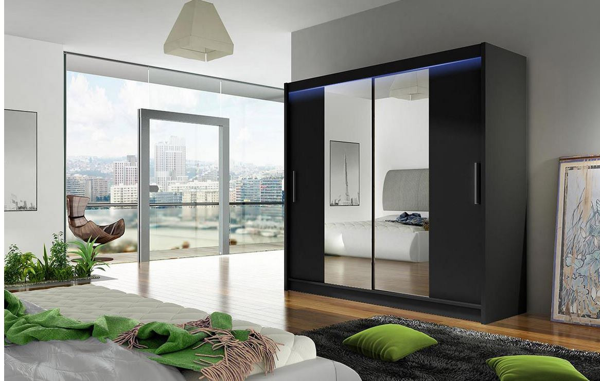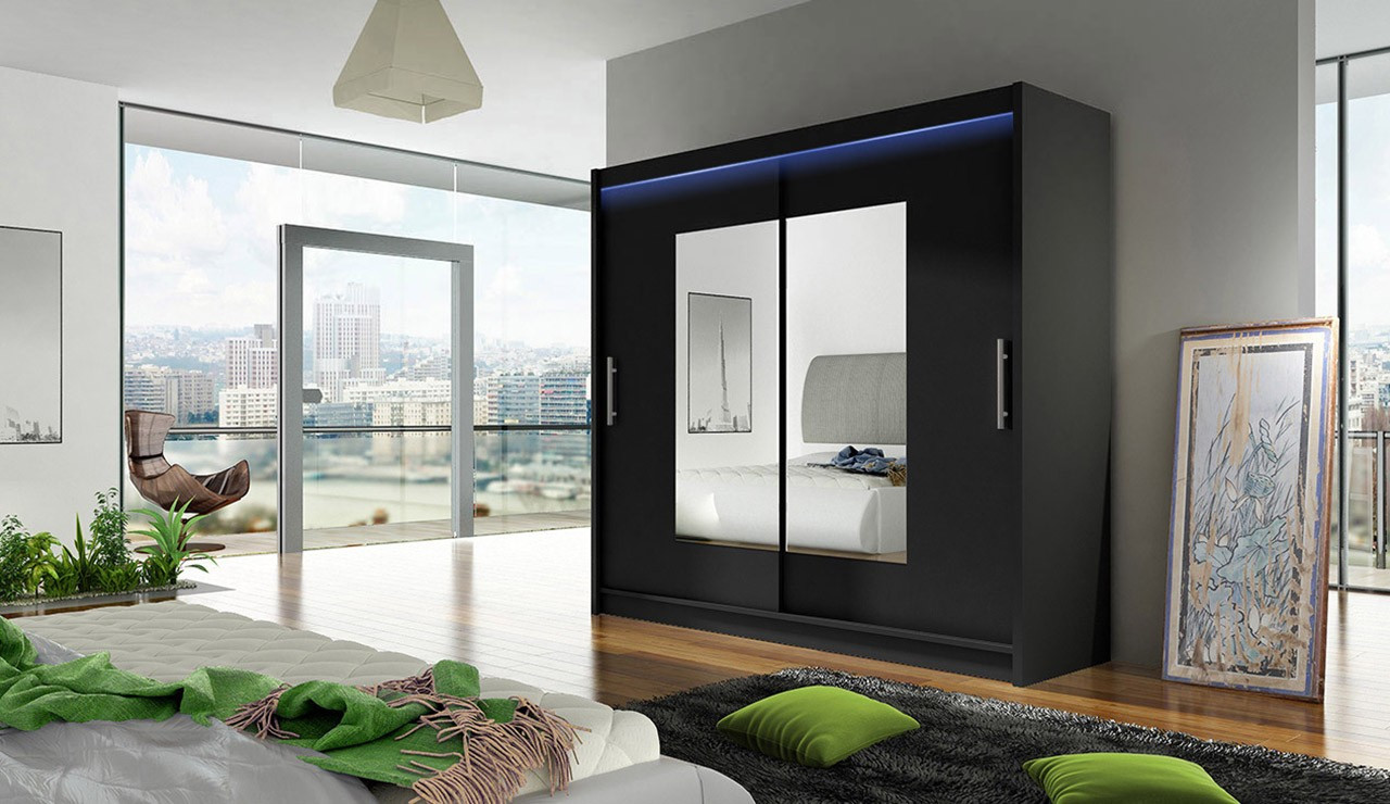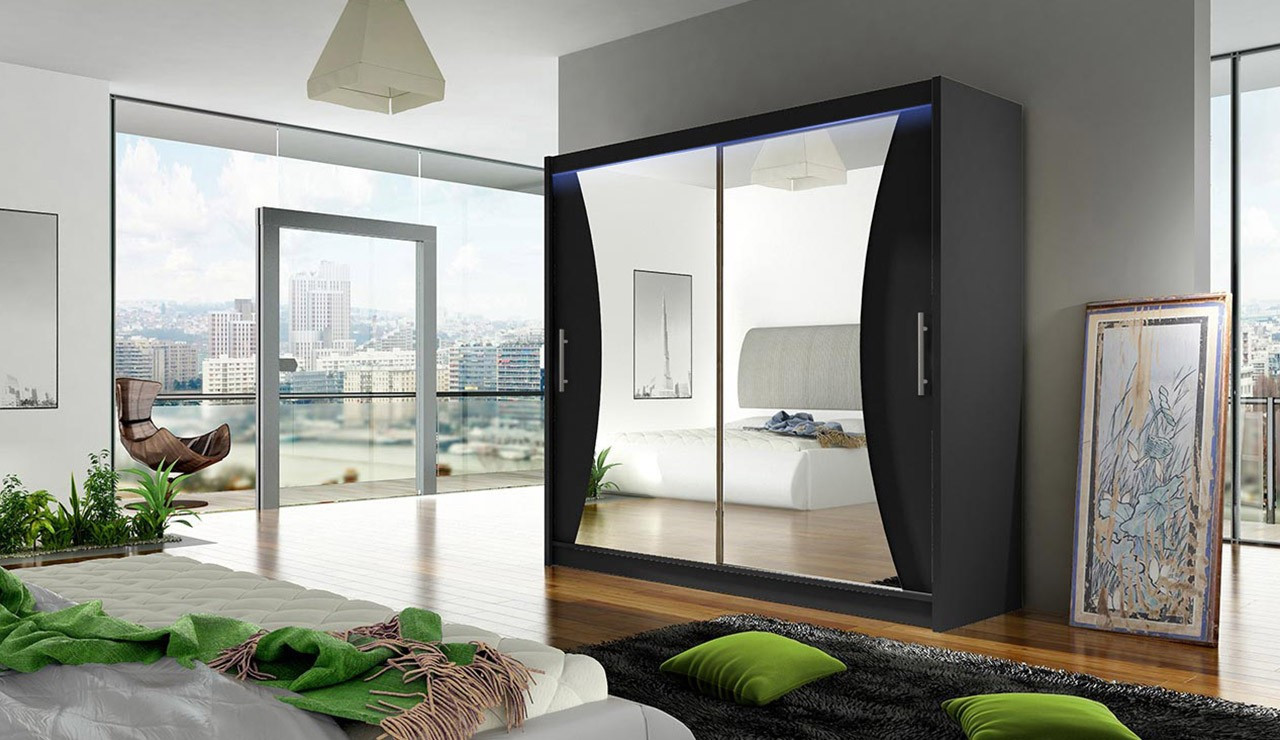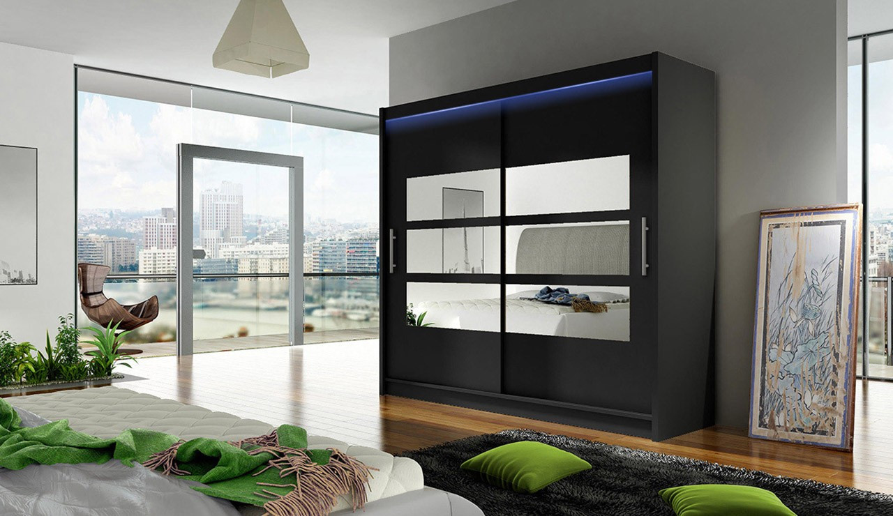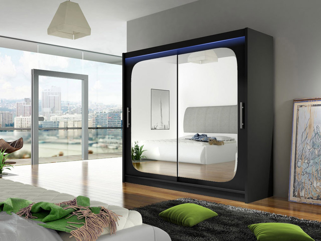 Šatní skříň 180 cm se zrcadlem a LED RGB osvětlením VILMA 3 - černá