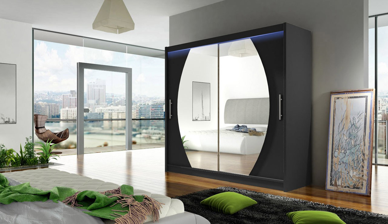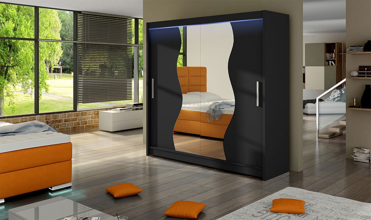Šatní skříň se zrcadlem a posuvnými dveřmi VILMA 3 se hodí do každého moderního interiéru. Vnitřní uspořádání je tvořeno hlubokými policemi a šatní tyčí, které umožňují snadné oddělení každodenních věcí. Skříň je vybavena barevným RGB LED osvětlením, které vám usnadní hledání vašeho perfektního kousku oblečení. Na výběr je mezi 15 barevnými variantami, které se přepínají pomocí přiloženého dálkového ovládání. Zrcadlo dodává šatníku kouzlo, zatímco zvětšuje a osvětluje místnost, ve které bude skříň umístěna. Skříň je vyrobena z odolné LTD desky, jejíž okraje jsou zakončeny dýhou PVC, což zvyšuje odolnost a trvanlivost nábytku.