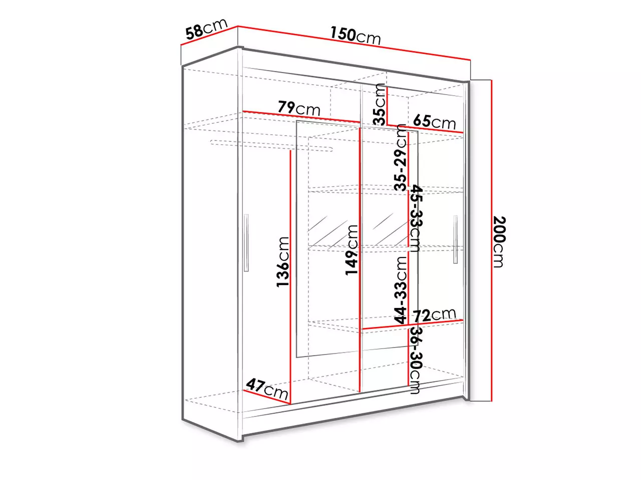 Šatní skříň se zrcadlem a posuvnými dveřmi ELADIO 3 se hodí do každého moderního interiéru. Vnitřní uspořádání je tvořeno hlubokými policemi a šatní tyčí, které umožňují snadné oddělení každodenních věcí. Skříň je vybavena barevným RGB LED osvětlením, které vám usnadní hledání vašeho perfektního kousku oblečení. Na výběr je mezi 15 barevnými variantami, které se přepínají pomocí přiloženého dálkového ovládání. Zrcadlo, které je umístěno uprostřed, dodává šatníku kouzlo, zatímco zvětšuje a osvětluje místnost, ve které bude skříň umístěna. Skříň je vyrobena z odolné LTD desky, jejíž hrany jsou zesíleny ABS dýhou, což zaručuje vysokou kvalitu.