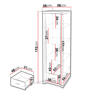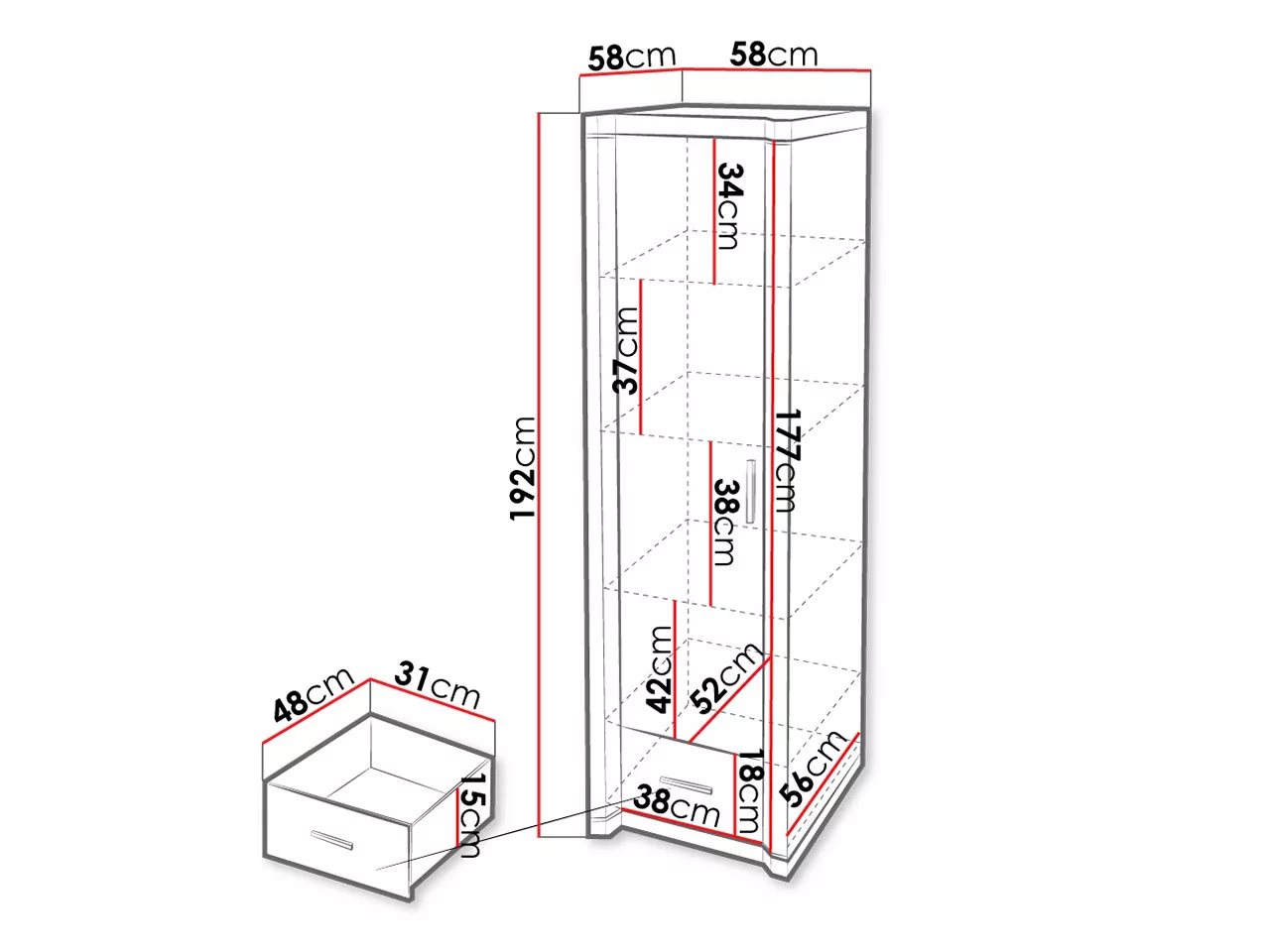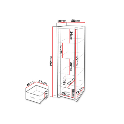 Šatní skříň ARIKA může být doplňkem každé ložnice nebo předsíně. Skříň je vybavena tyčí na ramínka a zásuvkou, která je umístěna ve spodní části. Kvalitní komponenty, zejména LTD deska, zajišťují stabilitu a životnost skříňky. Součástí balení jsou tři přídavné police.