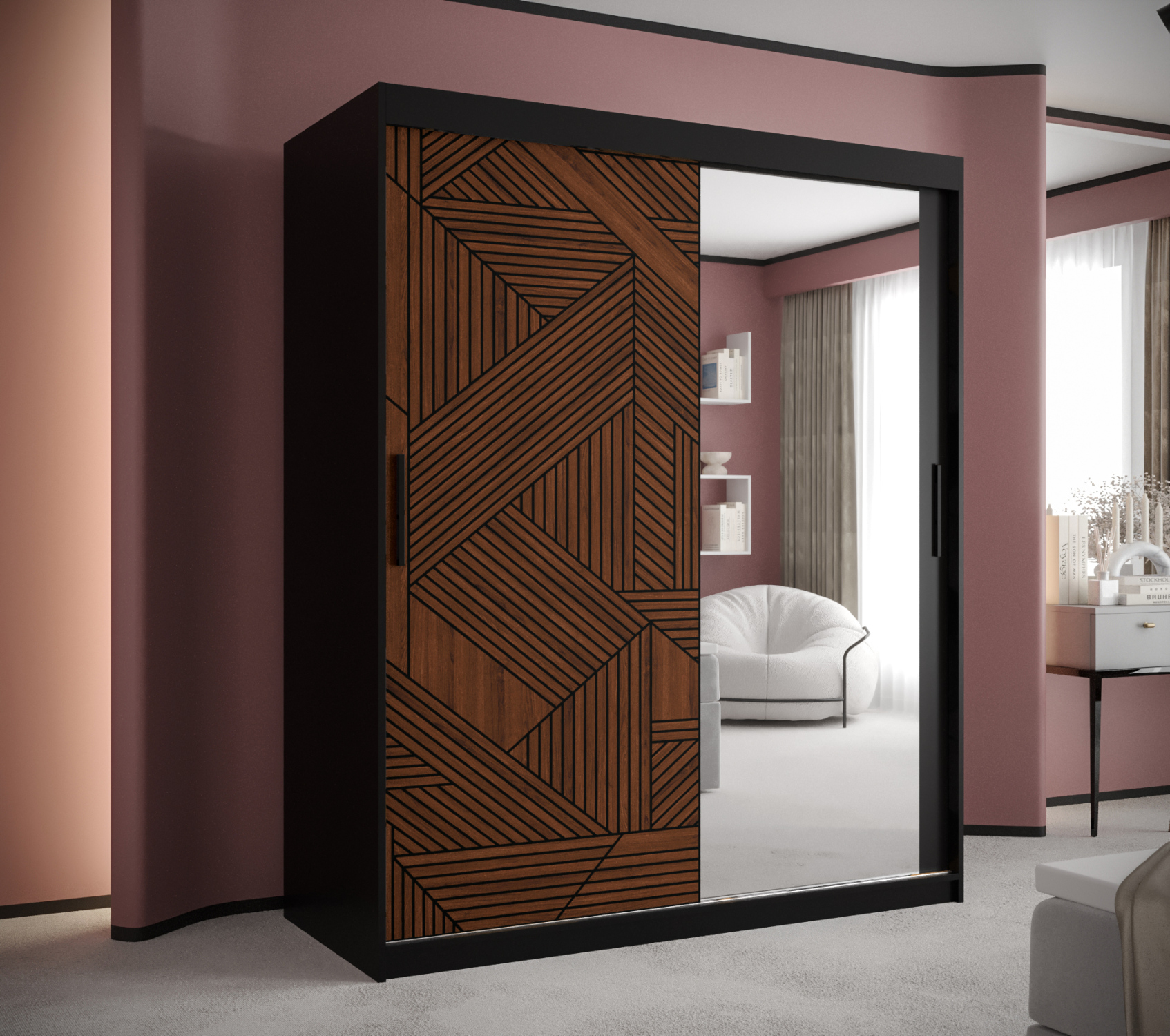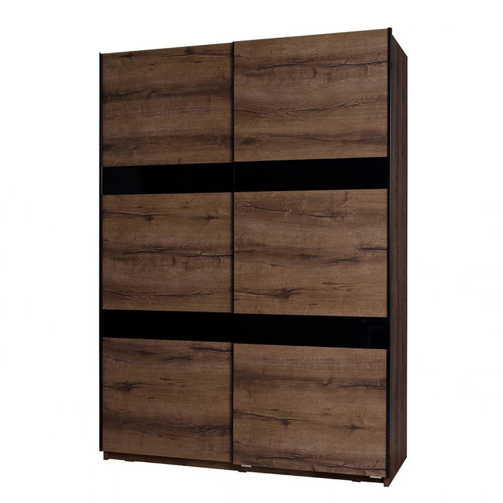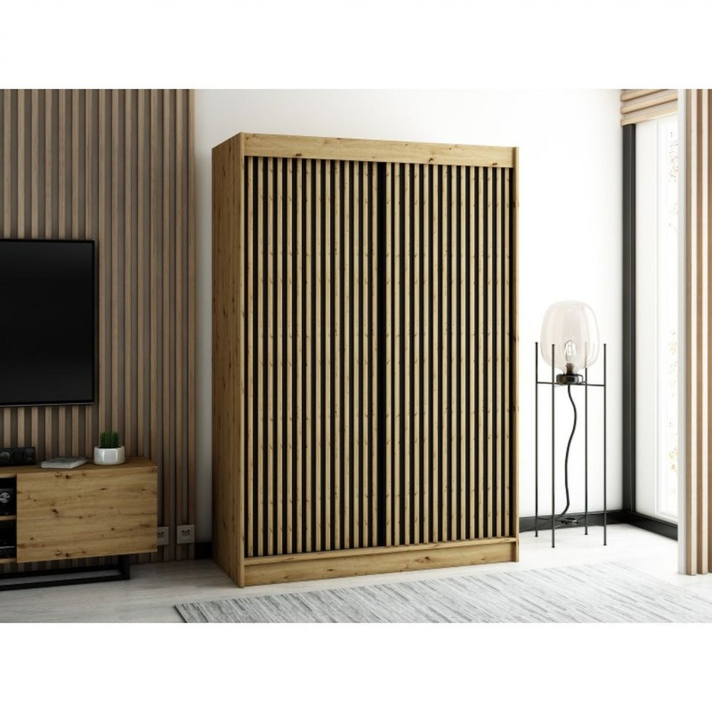 Šatní skříň s grafikou JANETTE 1 - šířka 150 cm, dub artisan / černá