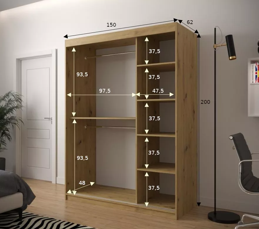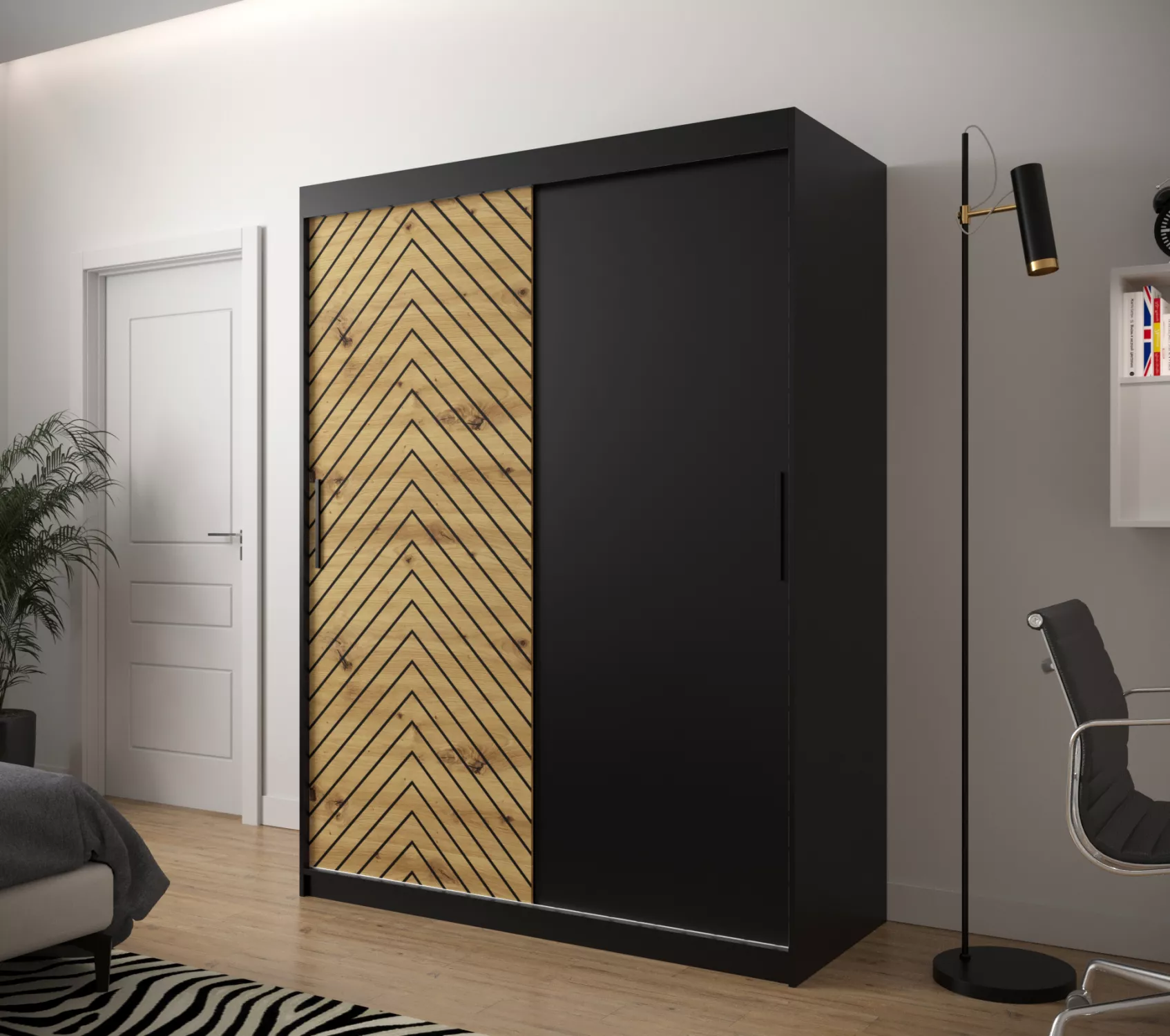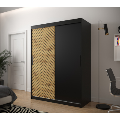 Šatní skříň s grafikou JANETTE 1 - šířka 150 cm, černá / dub artisan