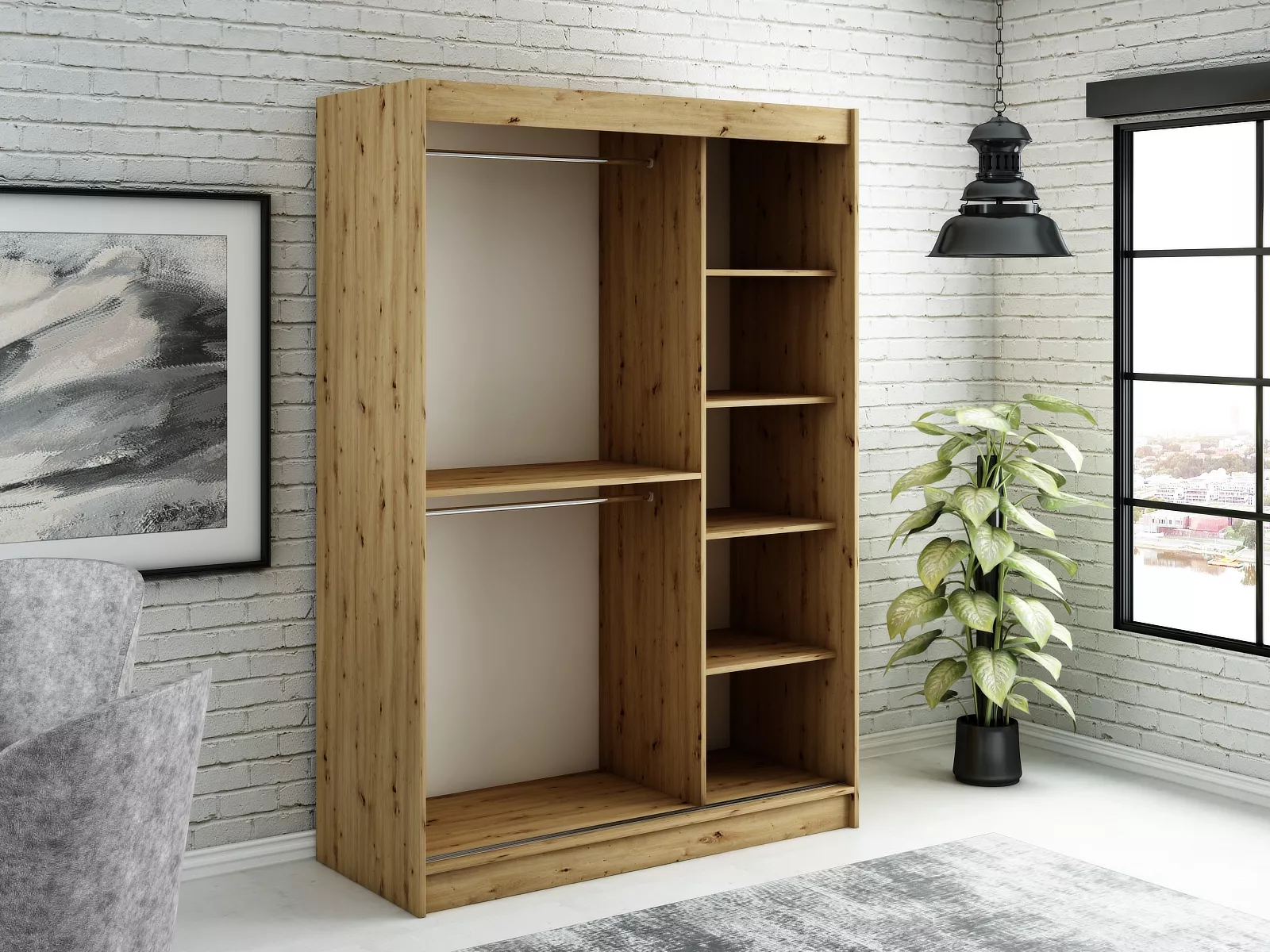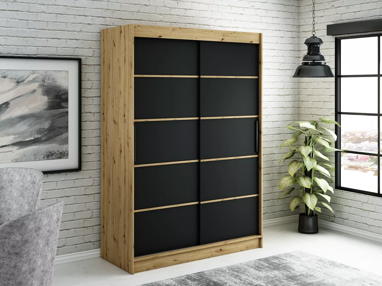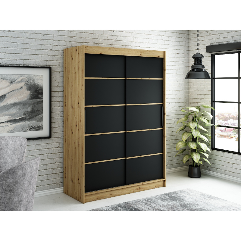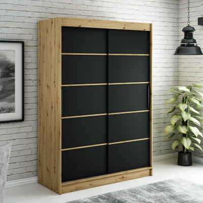 Šatní skříň s posuvnými dveřmi LURDES 4 - šířka 150 cm, dub artisan / černá