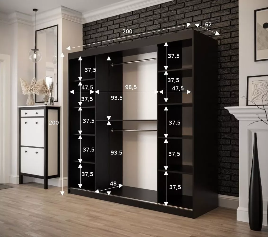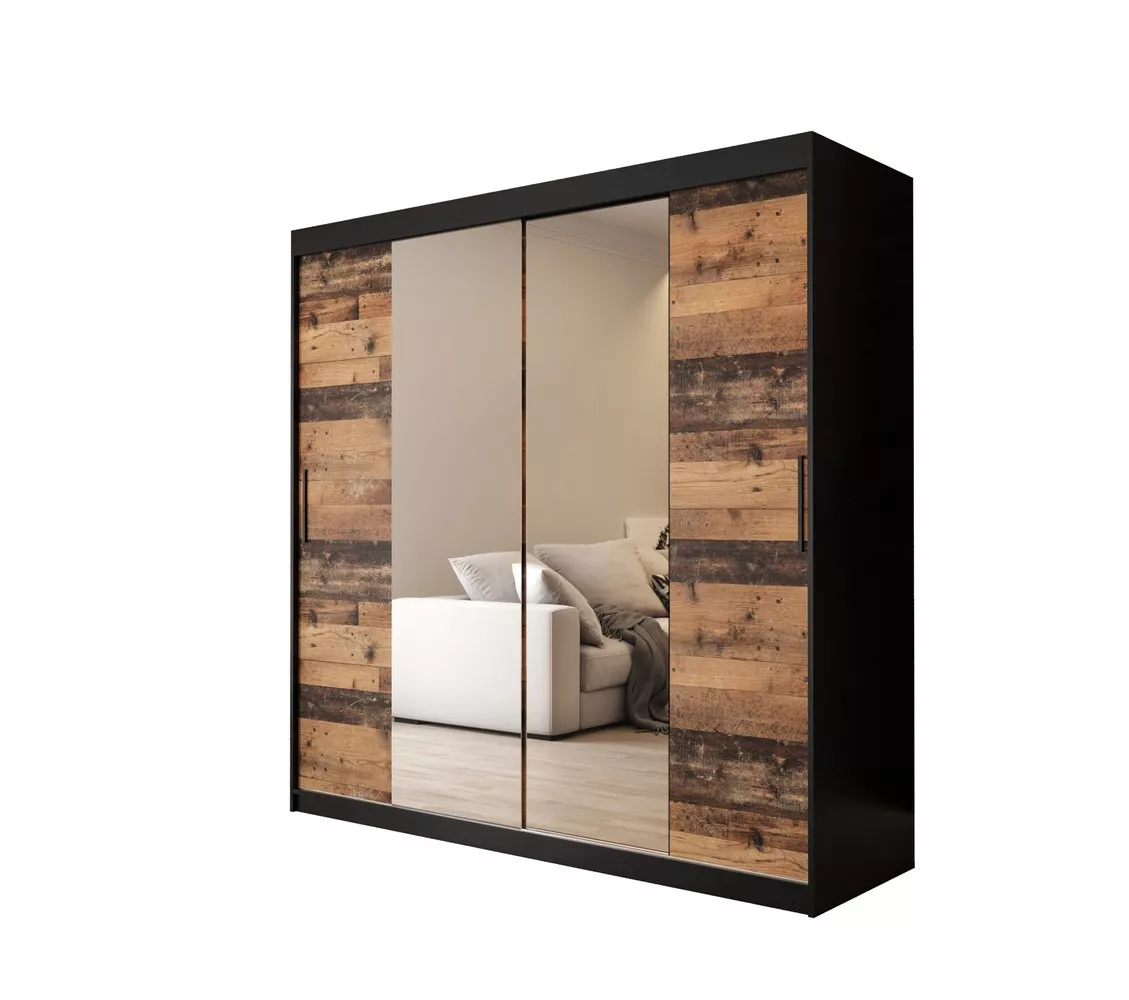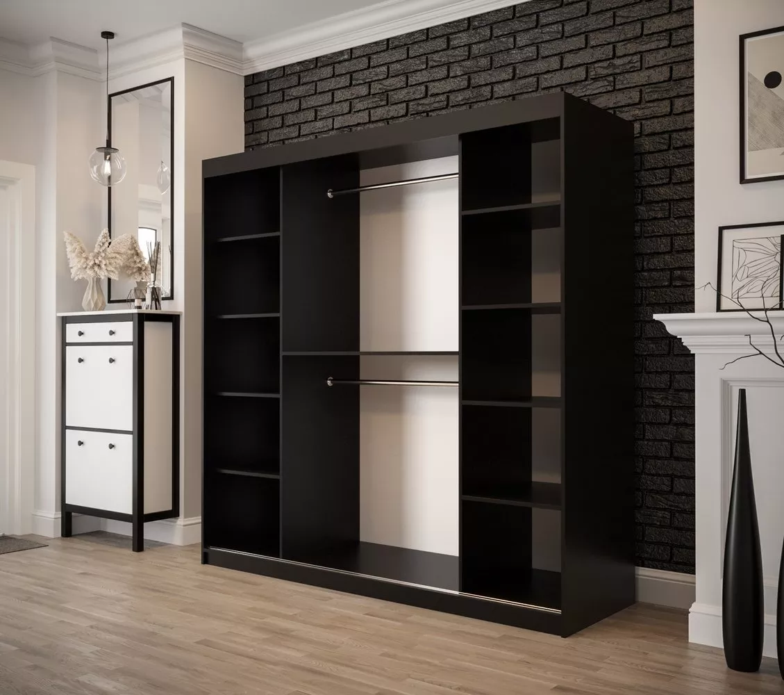 Dvoudveřová šatní skříň ORISA 2 - šířka 200 cm, černá / old style